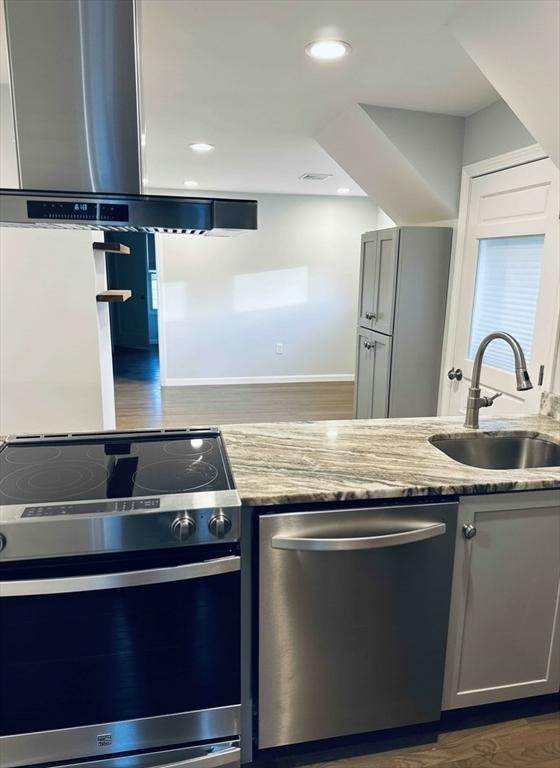 Top-floor, fully renovated 2-bedroom unit offering ~1,000 sq ft of bright, modern living! This move-in-ready home features a gourmet kitchen, high-end appliances, in-unit laundry, and beautiful hardwood floors throughout. The spacious layout includes two generously sized bedrooms, a sun-filled living room, an eat-in kitchen, plus a versatile bonus room—perfect for a home office or den. Enjoy rear porch, street parking, and a shared yard. Gas heat and electric cooking add efficiency and comfort. Ideally located on the Swampscott line, just minutes to King’s Beach, the Swampscott Commuter Rail to Boston, and close to bus lines, shopping, dining, banks, and schools. A perfect blend of space, style, and convenience—don’t miss this one!