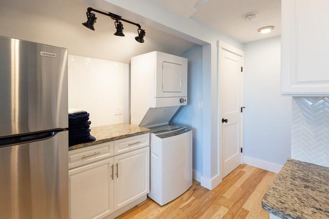 Fully renovated 2-bedroom apartment offering modern finishes and versatile living space. Walk to White Horse Beach. The kitchen features quartz countertops, a tiled backsplash, and stainless-steel appliances. The bathroom offers high vaulted ceilings with tiled shower. Enjoy a large private front deck with ocean views, private yard space, and off-street parking for two cars. In-unit washer/dryer. Available April 1st.