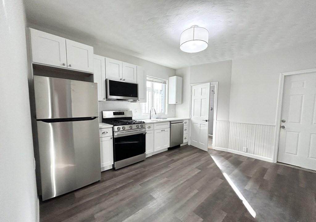 153 East Cottage is a great, affordable 4 bedroom apartment that has been newly renovated with 2 full baths and updated appliances. Located right off the intersection of Columbia Rd and East Cottage, this apartment is a great location with plenty of public transportation, bars, restaurants, shop, and schools nearby. Bus routes are found right on Columbia Rd and the unit is a stone-throw away from the JFK T Stop (Red line), making it easy to get around the city! Bedrooms are spacious, and the kitchen is an eat-in kitchen with room for a table. Living room is located towards the front of the apartment with bay windows that bring it lots of natural light.. Kitchen comes equipped with stainless steel appliances and a dishwasher. Take a tour before its too late!