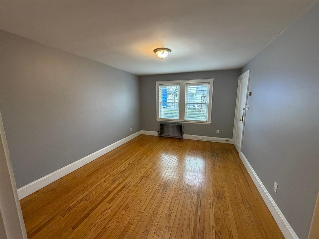 One bedroom, one bathroom with heat and hot water included in four unit building on second floor. Hardwood floors throughout. Bonus room for a dining area or office. . Off-street parking for one car. Storage bin in the basement. Laundry (not coin-op) in the basement. Close to the N. Quincy T station, close to Wollaston Beach, and the expressway! No pets; no smoking.