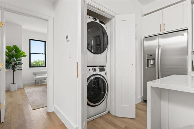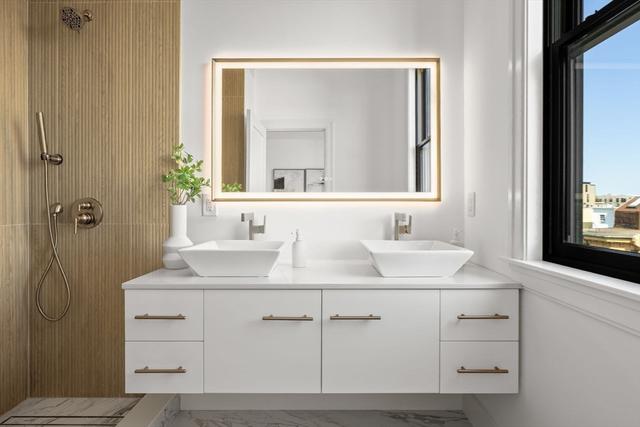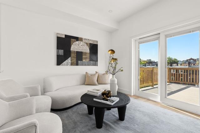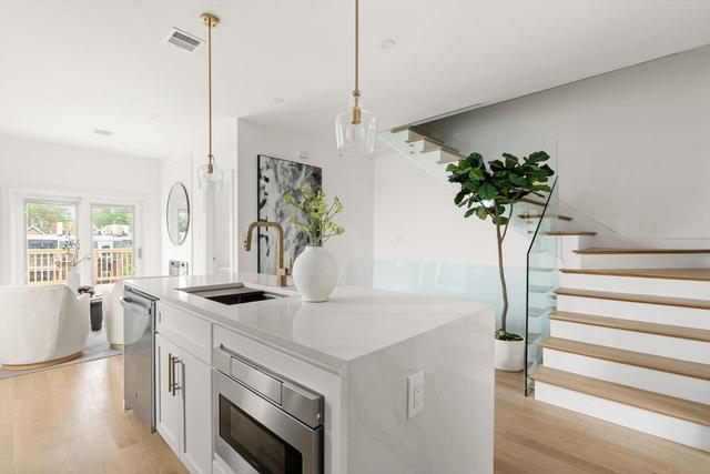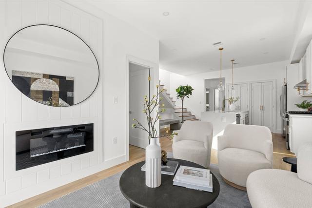Discover a stunning 2-bedroom, 2-bath home that brings modern style and effortless East Boston living together in one incredible space. Soaring ceilings, natural light, and sleek white oak floors create an open, airy feel from the moment you walk in. The contemporary kitchen features quartz countertops and custom cabinetry, flowing seamlessly into a spacious living area with a striking fireplace—perfect for relaxing or hosting friends.Enjoy not one, but two private outdoor spaces: a large deck right off the living area and a private roof deck with panoramic views of East Boston and the Boston skyline. The tranquil primary suite includes a beautifully designed en-suite bath and generous closet space, offering the comfort and privacy you’re looking for.You’ll be just minutes from the Blue Line, scenic waterfront parks, and some of the neighborhood’s best restaurants. This home offers a truly special living experience—one you’ll love coming back to every day.
