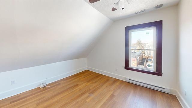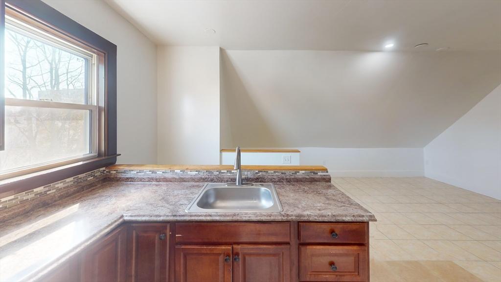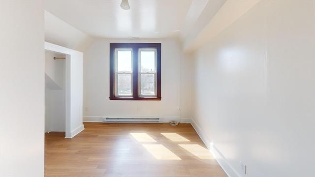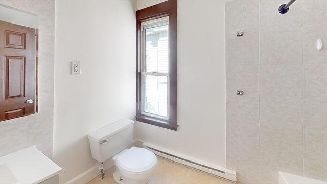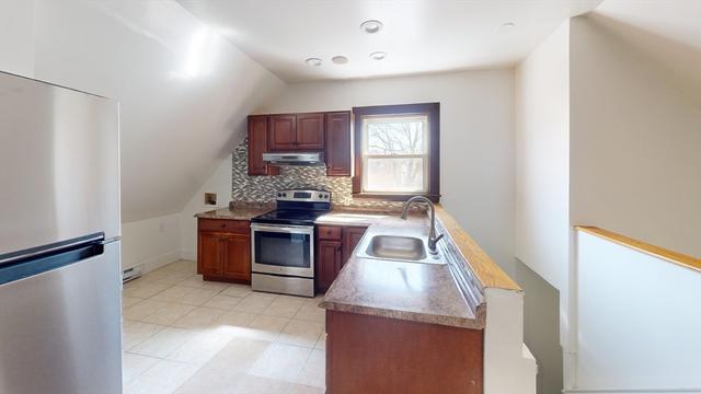 Third-floor apartment at 45 Henry Ave in Lynn offers a modern single-floor layout featuring three bedrooms and one bathroom. The open living and dining area feels bright and airy, with light hardwood flooring and large windows that fill the home with natural light. The updated kitchen stands out with dark cabinetry, white countertops, stainless steel appliances and a central island providing extra prep space and casual seating. The sleek bathroom includes a granite-topped vanity and a tub/shower combination. Bedrooms are well-proportioned and the primary suite offers plenty of room for a sitting area or home office. Contemporary fixtures, neutral walls and modern ceiling fans enhance the stylish, comfortable feel of this thoughtfully designed apartment. room for a extra office space. one off street parking spot. laundrymat directly across street