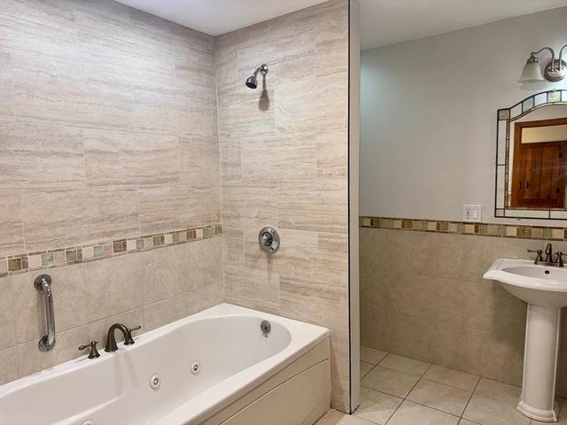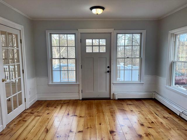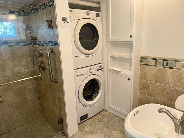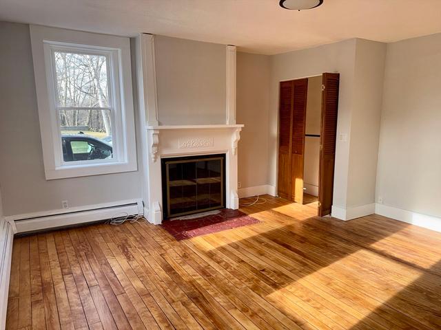 Available NOW! TWO CAR GARAGE INCLUDED. Discover this beautifully renovated 3-bedroom, 2-bath apartment in Westford's Forge Village. This charming first floor apartment is one of three units in the building and offers an open-concept kitchen that flows seamlessly into a bright, window-lined dining area with access to a private backyard deck. Enjoy two full bathrooms, in-unit laundry, and ample closet space, all designed for comfort, privacy, and flexibility. All bedrooms are spacious and accommodating. This apartment includes a dedicated two-car garage, shared backyard, and forced air heating/cooling throughout. Common basement access is available to store additional belongings. Spacious, inviting, and thoughtfully designed, this apartment is a rare opportunity you won't want to miss!